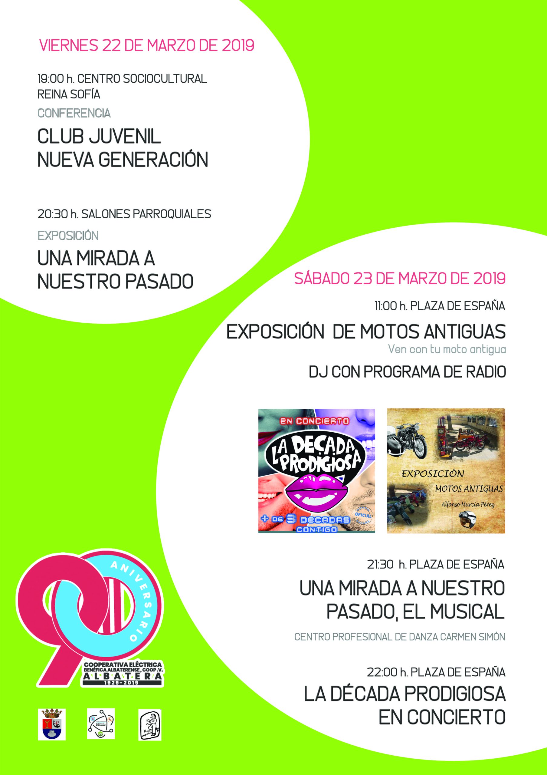 Estos actos han sido organizados por la Cooperativa Eléctrica Benéfica Albaterense con motivo del 90 aniversario de su fundación, contando además con la colaboración de la comisión de trabajo del club juvenil “Nuestra Generación” y la concejalía de Cultura del Ayuntamiento de Albatera.