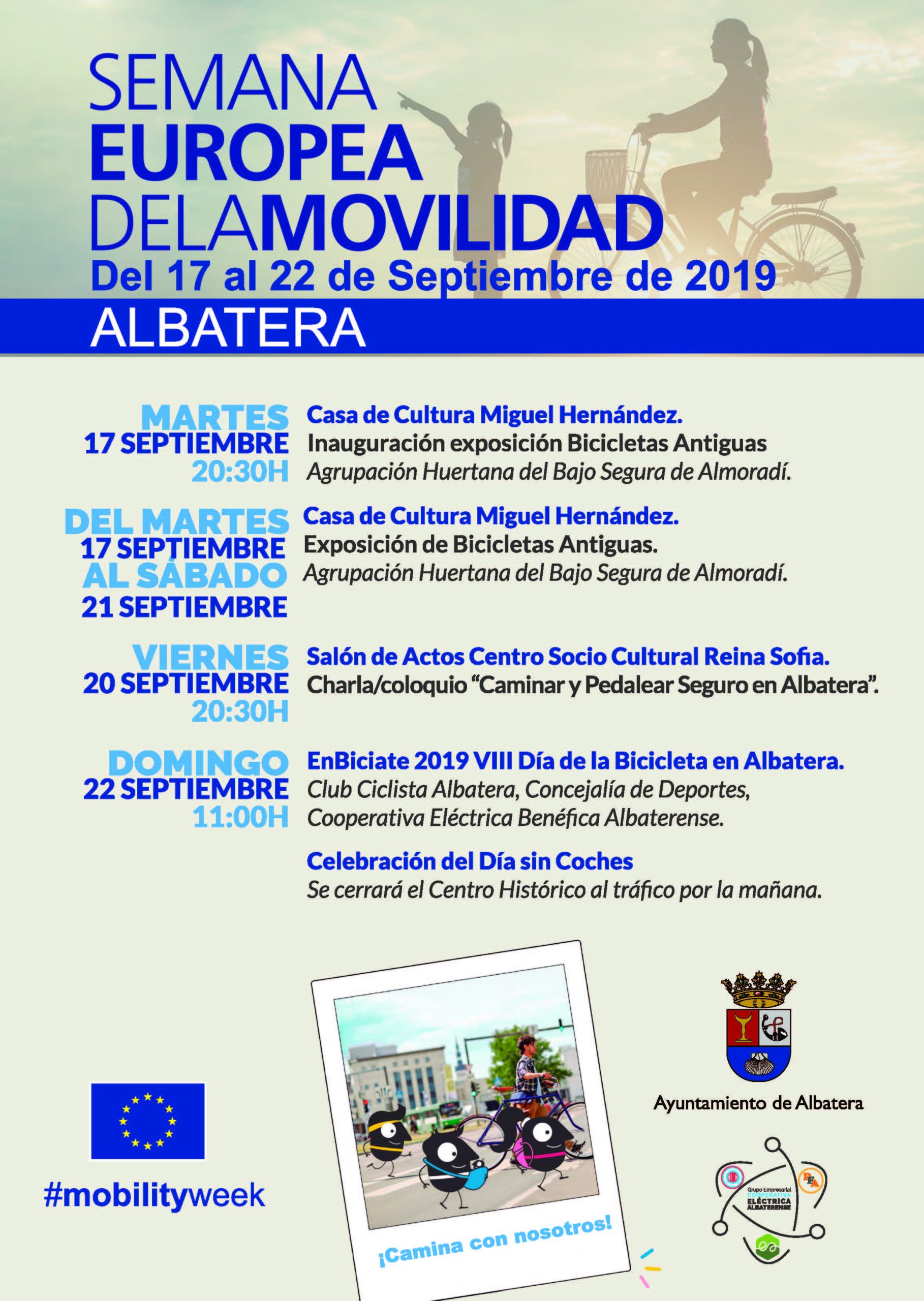 Este año el “Enbiciate” se va a celebrar junto a la Semana Europea de la Movilidad, en la que, según ha destacado Alfredo Box, concejal de Deportes, “desde la concejalía y en colaboración con el Club Ciclista Albatera, hemos querido celebrar la Semana Europea de la Movilidad, organizando actividades desde el martes 17, hasta el domingo 22 que tendrá lugar el VIII Día de la Bicicleta”.