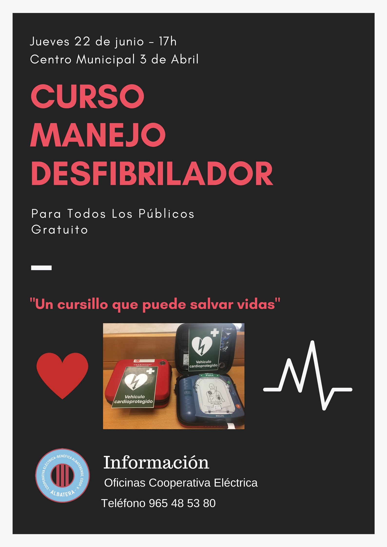 La Cooperativa Eléctrica Benéfica Albaterense ha instalado desfibriladores en edificios y zonas publicas de Albatera y ha reubicado un tercer