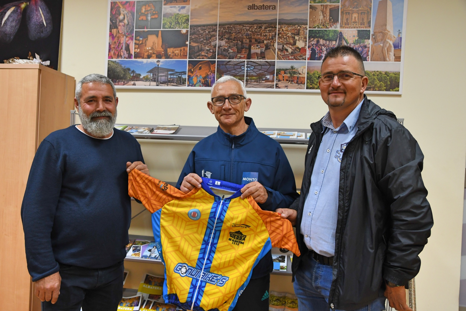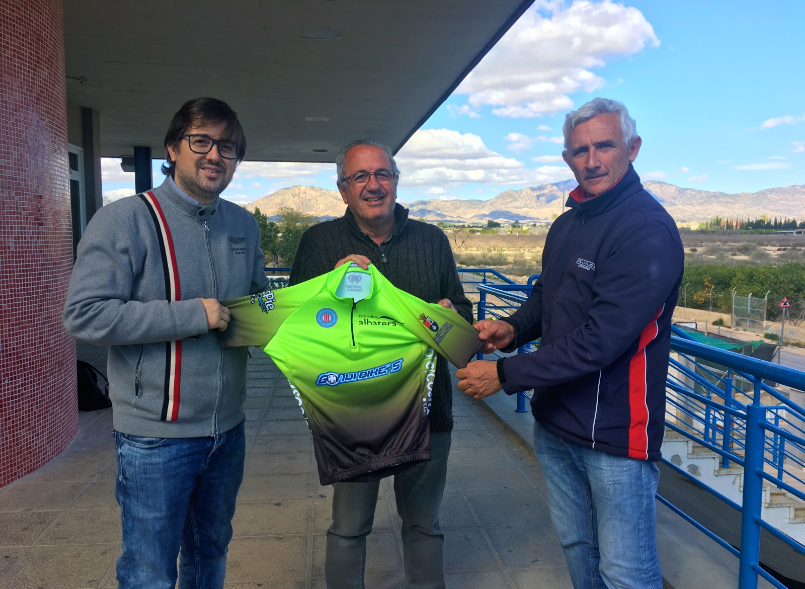 El presidente del Club Ciclista Albatera, Miguel Juan, junto con el concejal de Deportes, Alfredo Box y Manuel Serna, presidente
