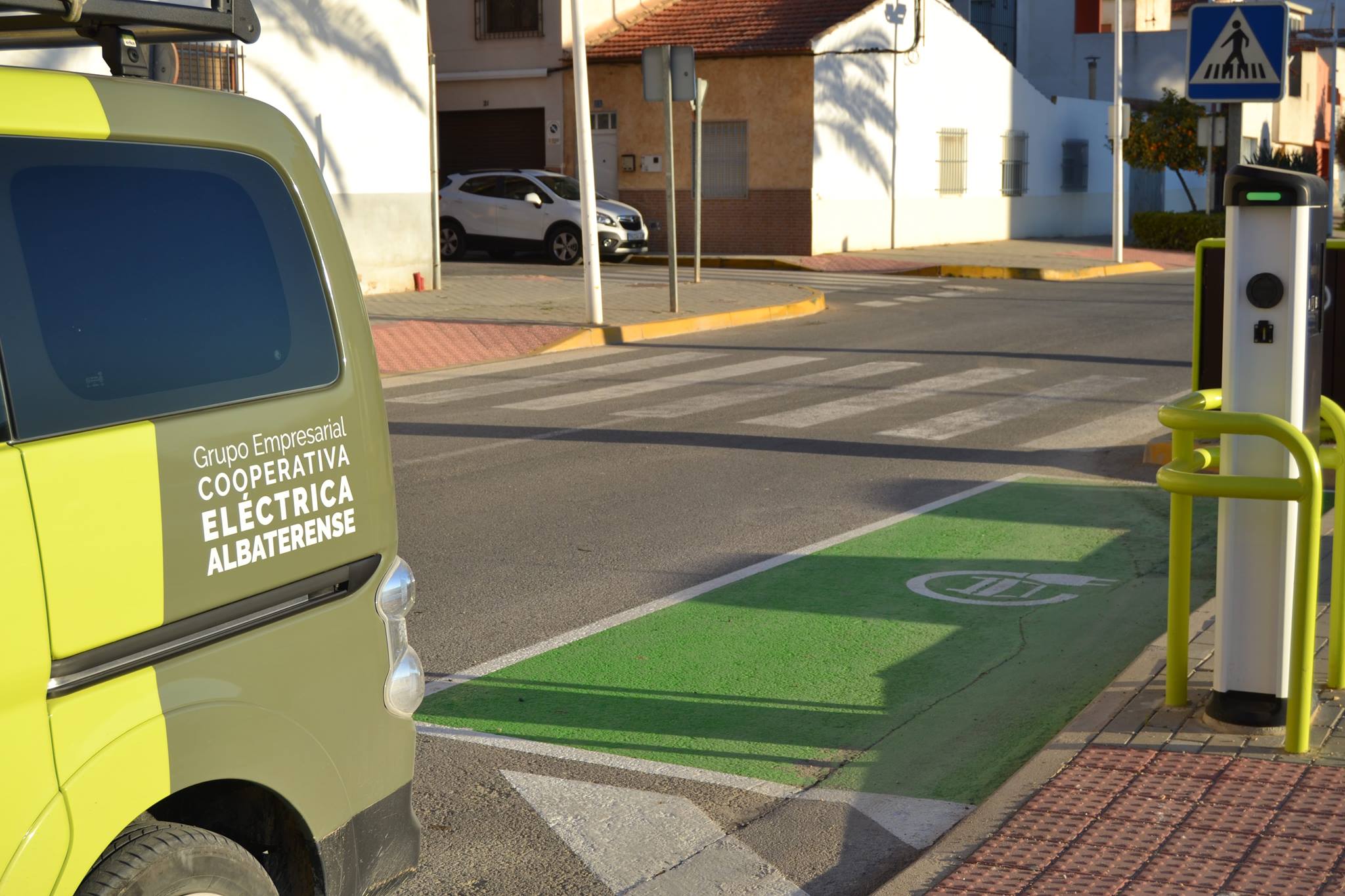 Ya han finalizado las obras de mejora del punto de recarga de vehículos eléctricos de la Cooperativa Eléctrica Benéfica Albaterense.