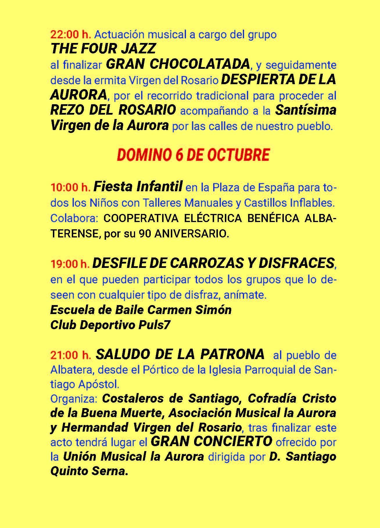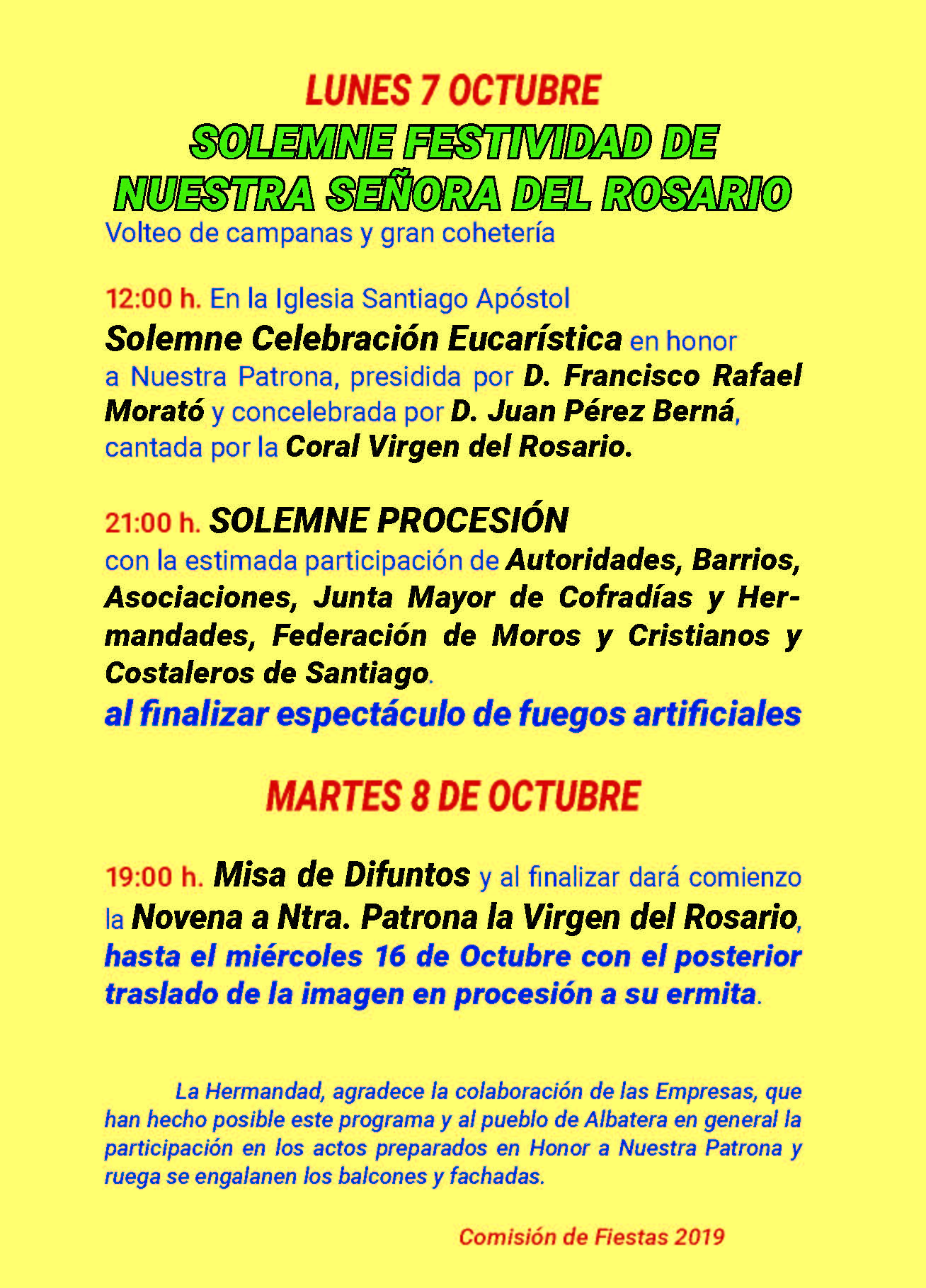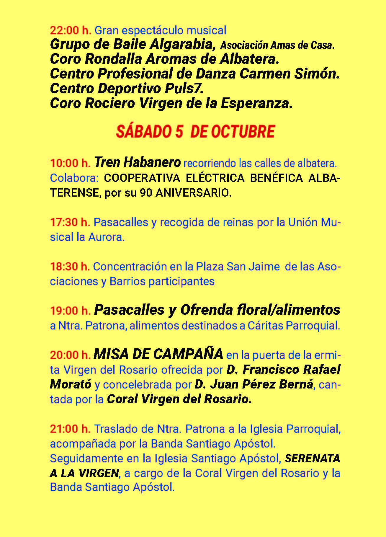 Albatera se viste de nuevo de fiesta para celebrar en esta ocasión las fiestas en honor a su patrona, la Virgen del Rosario. Un año más, la Obra Social de la Cooperativa Eléctrica Benéfica Albaterense colabora estrechamente con la Hermandad de la Virgen del Rosario en la organización de multitud de actividades que se llevarán a cabo durante los próximos días.