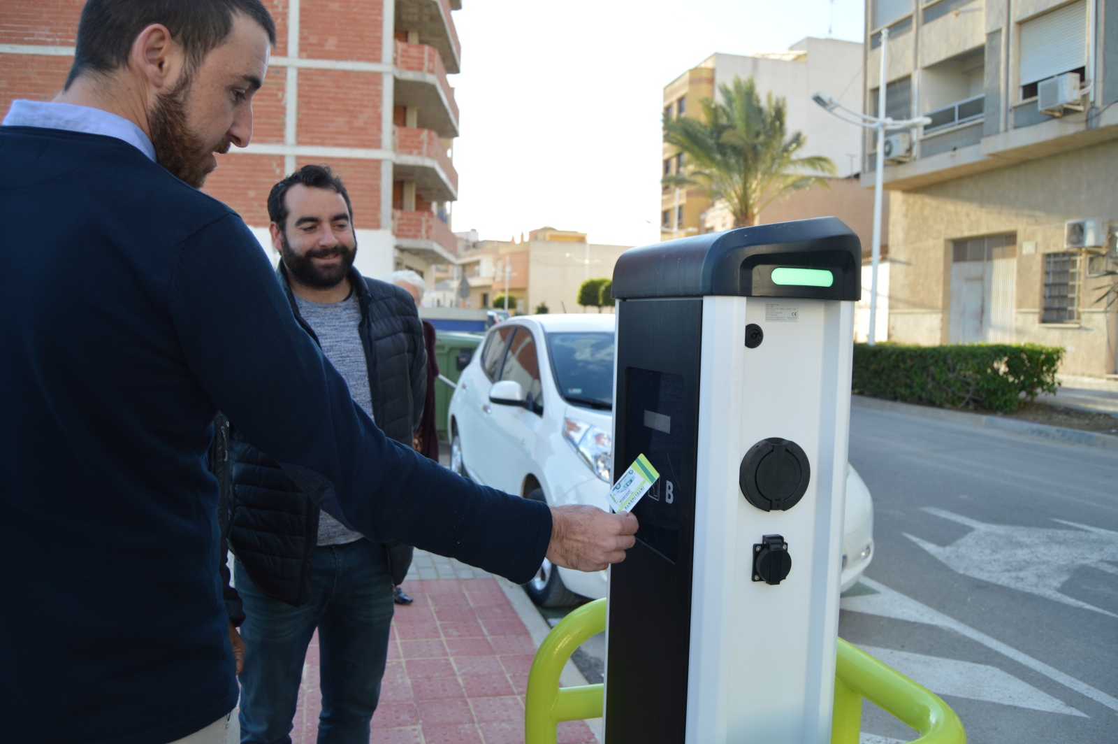 La Cooperativa Eléctrica Benéfica Albaterense ha dado la primera tarjeta para el punto de recarga a un socio de la entidad que posee un coche eléctrico. Mario Berná, presidente de la Cooperativa, comentó que “Viria es el primer socio que va a disfrutar de nuestro punto de recarga gratuito. Él es uno de los privilegiados que en Albatera tiene un coche eléctrico”.